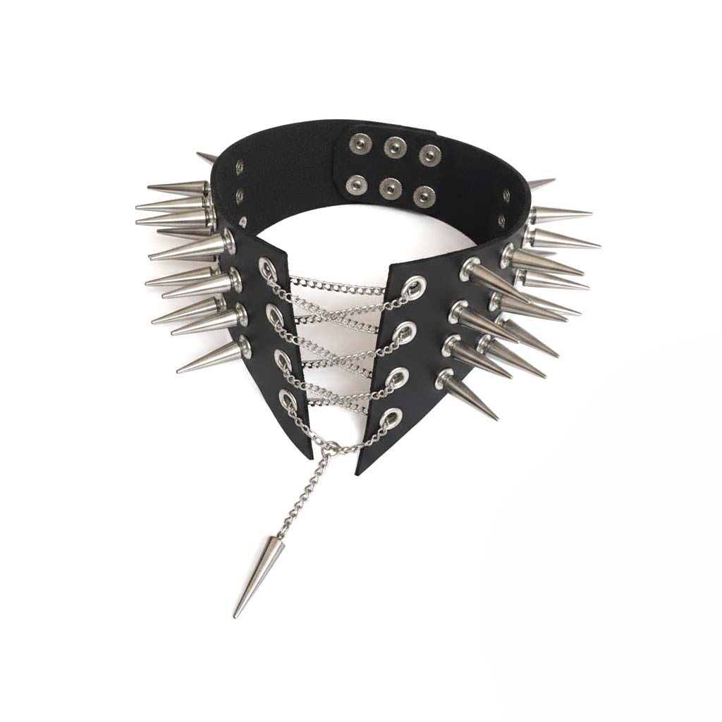 Боковые шипы добавляют агрессии и характера — это деталь, которая работает с любого ракурса. Спереди — провокационная шнуровка на цепях. Переплетение металла создает напряжение, усиливает драму и притягивает взгляд к центру композиции. Подвеска добавляет динамики — при движении она ловит свет и усиливает эффект.