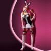 - полупрозрачное боди из микросетки с лаковыми вставками на груди и подвязками для чулок. Боди на молнии, так что степень откровенности декольте выбираете вы (да и снять его при необходимости будет легко и просто);