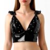 Лакированный виниловый лиф с шипами Art of Sex – Mistress, черный с эффектом голограммы, размер L
