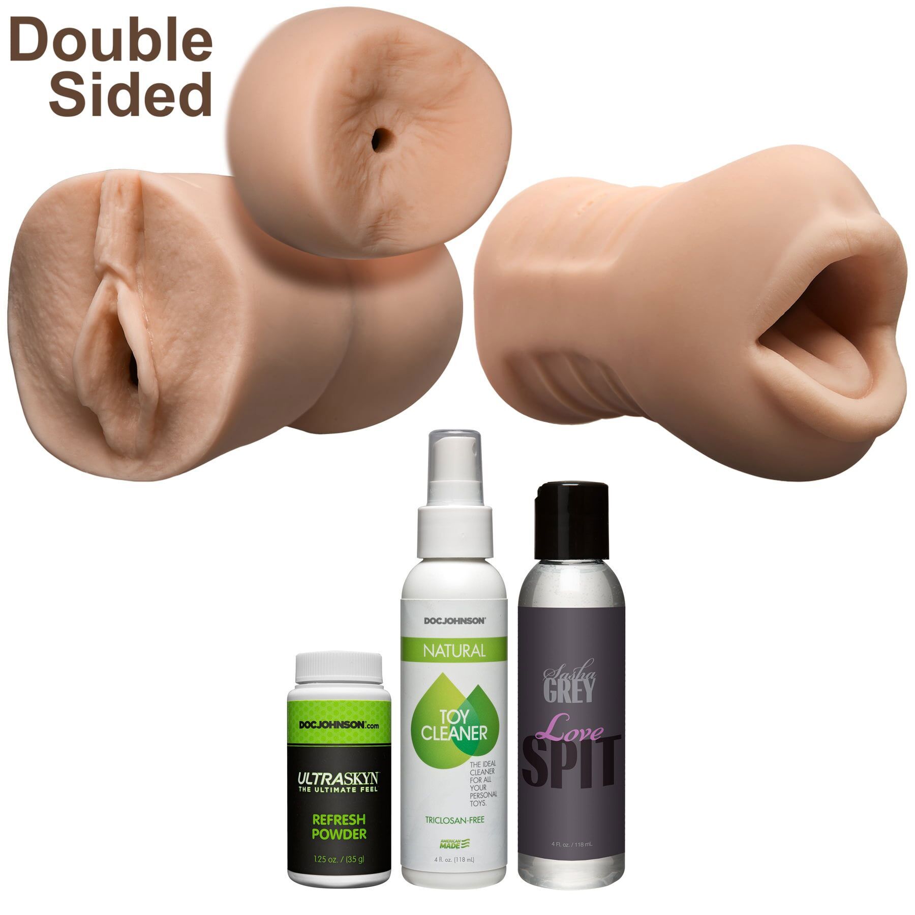 Легендарная Саша Грей теперь полностью в вашем распоряжении! Достаточно купить набор мастурбаторов Doc Johnson The Sasha Grey Experience — вагина, ротик и попка Саши Грей будут ждать ваших горячих проникновений! Ультрареалистичный материал перенесет вас в мир развратных грез, а удачная комплектация набора (лубрикант, очиститель для игрушек, освежающая пудра) позволит ни о чем не волноваться.