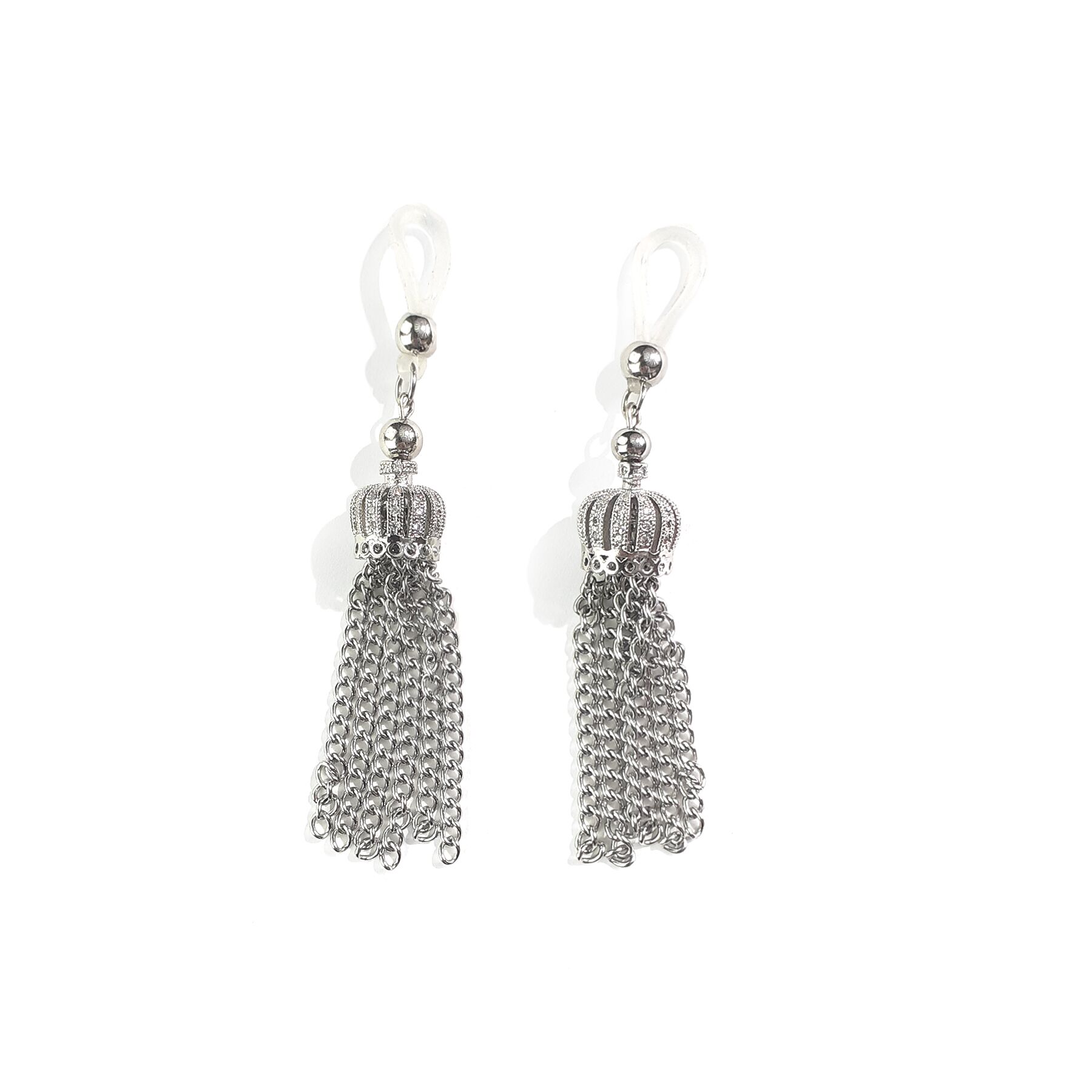 Украшение крепится на сосках с помощью мягких силиконовых петелек, которые практически не ощутимы на теле. В отличии от зажимов, это украшение не травмирует грудь и не вызывает дискомфорта во время ношения. Оно идеально ложится на грудь, обеспечивая приятные ощущения в процессе ваших интимных игр.