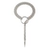 Эффектное украшение с массивной цепью и центральным кольцом создает сильный акцент и притягивает внимание с первого взгляда. Длинная подвеска визуально вытягивает силуэт и подчеркивает линию декольте.