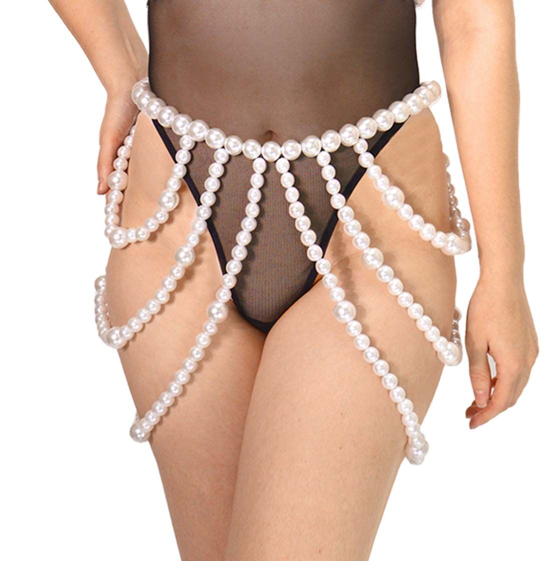 Жемчужный топ, который невозможно не заметить. Крупные бусины собраны в форму бра и красиво подчеркивают линию груди, создавая яркий, эффектный силуэт. Это не просто аксессуар — это акцент, который задаёт весь образ.